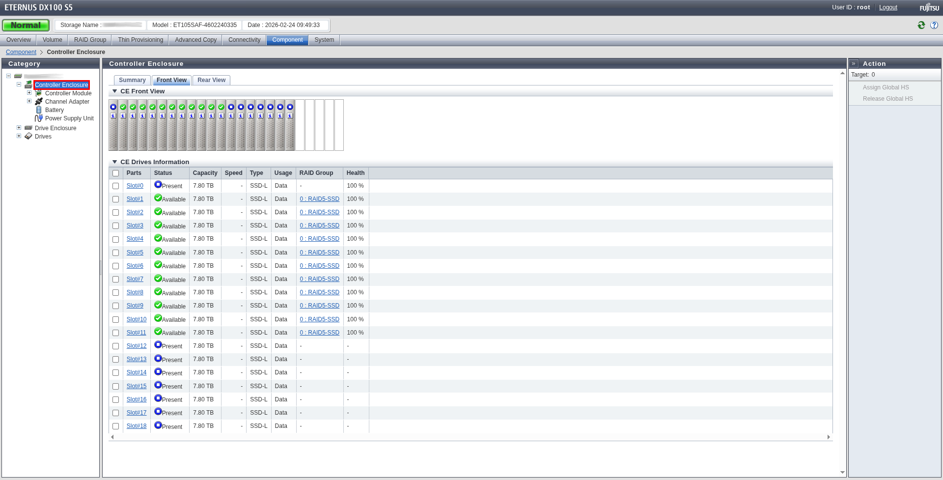 Dort kannst du links in der "Category" einmal auf "Controller Enclosure" klicken, dann solltest du den aktuellen Zustand deiner SAN sehen.